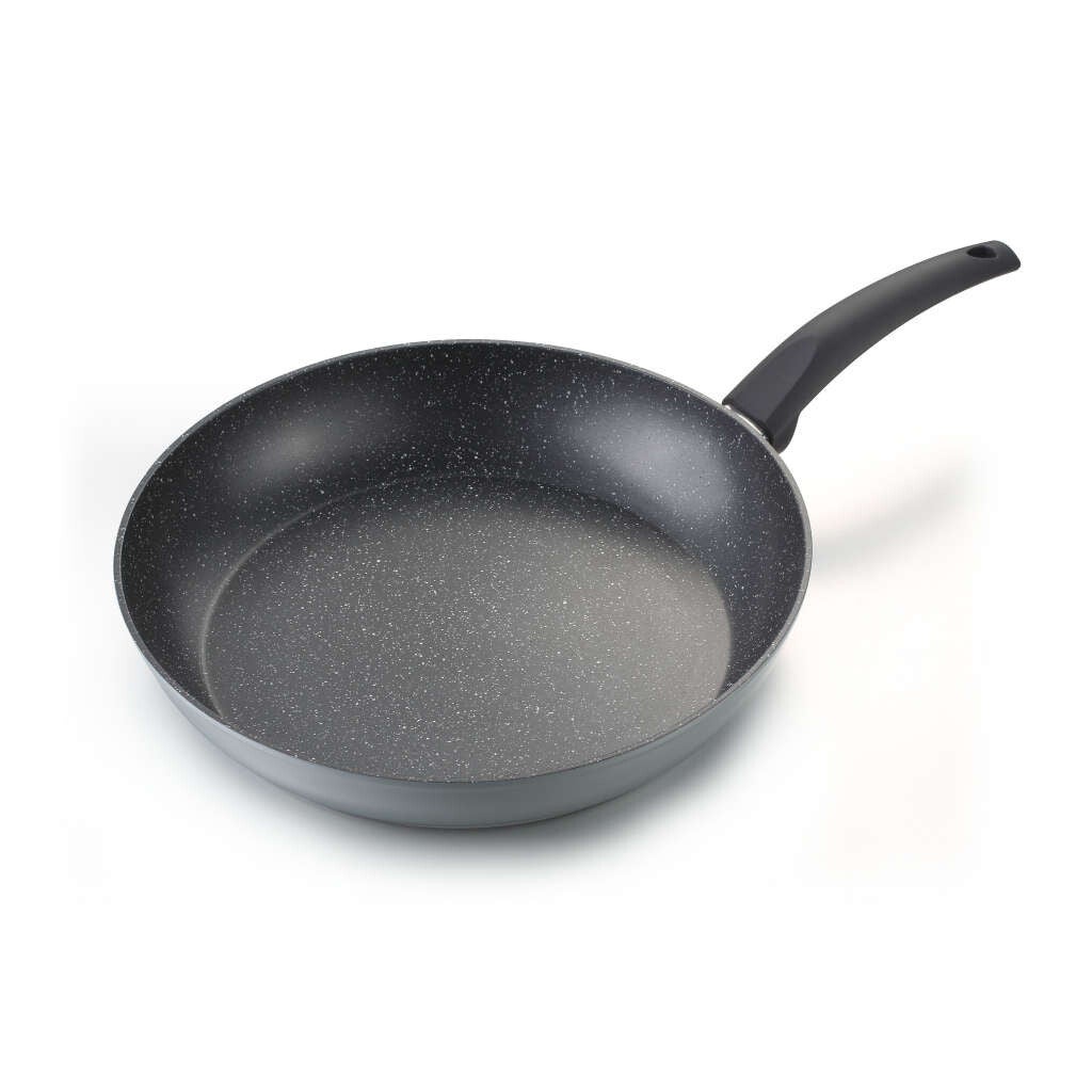 Padella Borella diametro 28 antiaderente, PFOA Free, con manico in Soft Touch, colore salvia esterno, interno color grigio puntinato bianco